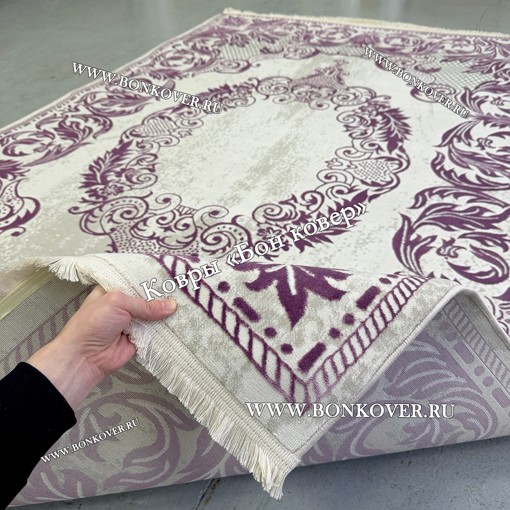 Ковер Медальон Для Гостиной Дизайн 30543 Сиреневый станет привлекательным дополнением интерьера, оформленного в современном или классическом стиле. Мягкое, но прочное, ковровое покрытие обеспечивает тепло- и шумоизоляцию, отличается длительным сроком эксплуатации, пожаробезопасностью, экологичностью и высокой износостойкостью, является отличной преградой от повышенной влажности в помещении и утеплителем для холодного пола. Благодаря качеству материалов, ковер не деформируется, сохраняет форму под тяжестью предметов мебели. За его поверхностью легко ухаживать.